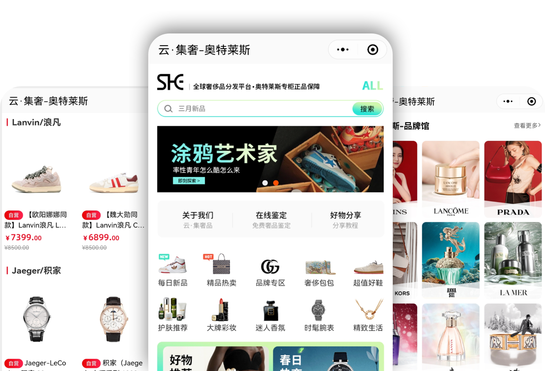 云集.奢 奧特萊斯云集奢致力于高端奢侈品線上銷售,依托微分銷小程序商城,布局
